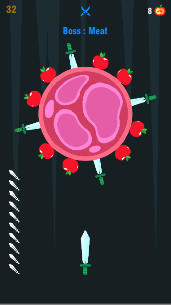 Throw the knives into the logs to break them. Slash the apples and unlock new knives. Each 5th stage is defended by a boss - beat them to get exclusive knives!