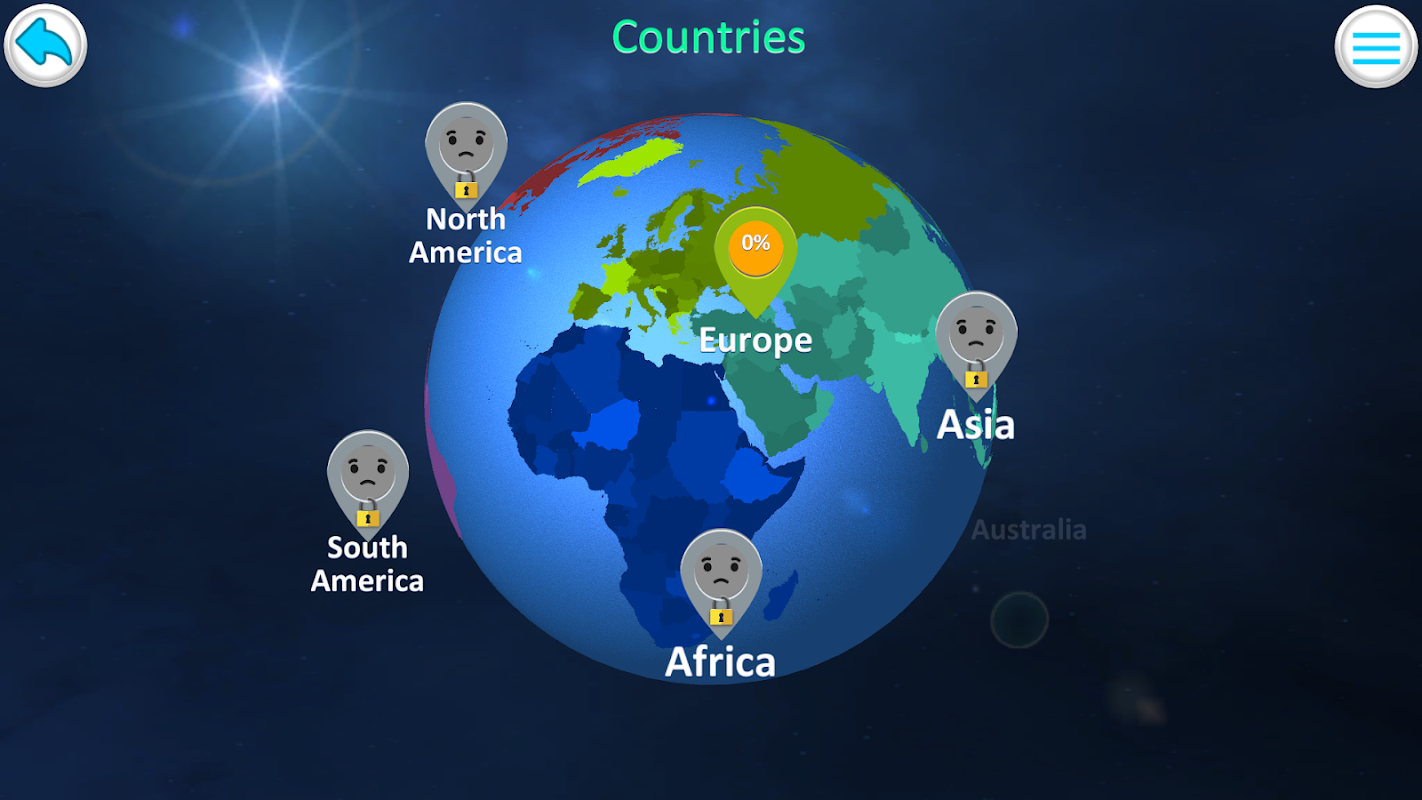 遊戲允許您研究國家在地圖上的位置,首都名稱,國旗的外觀。探索模式可幫助您找到有關每個國家/地區的人口,領土,在世界上的位置以及更多的有趣信息。
