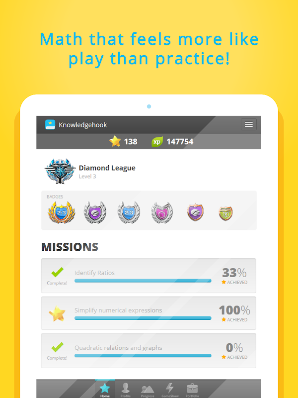 • Missions allow teachers to assign self-paced practice for students, which includes digital stars, leagues and badges and ships actual math pennants, certificates and medals to schools as students complete the standards-aligned content.