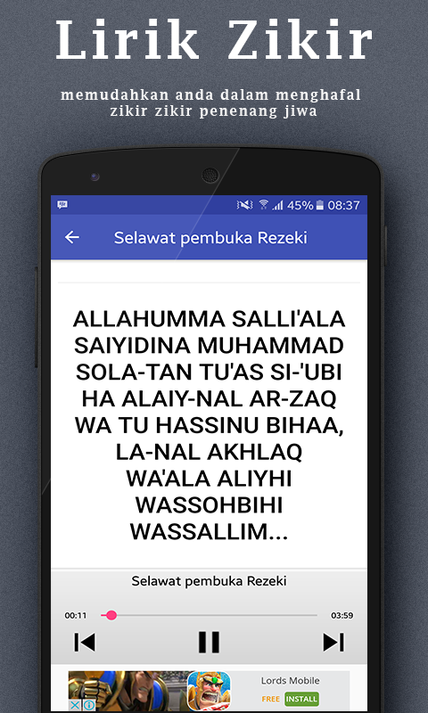 朗誦MP3的應用程序可以幫助你記得真主,乞討已經作出了赦免的罪。 dhikr的可以祈禱,安靜的時間後進行,這樣更加激烈的夜晚。每天dhikr的,我們應該閱讀和隨時傳唱。