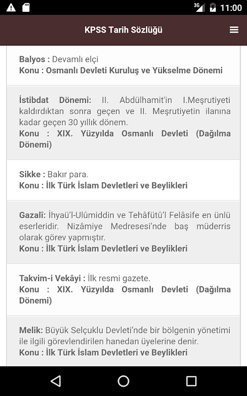 ve diğer tüm KPSS Tarih konularından seçilerek hazırlanan yüzlerce tanım uygulama içerisinde sizi bekliyor. İnternet bağlantısı gerekmeden uygulamayı kullanabilirsiniz.