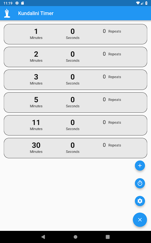 完成計時器後,將播放一次鑼(儘管可以將其關閉並改為使用振動)。無需關閉計時器,因此您可以專注於瑜伽通行證。