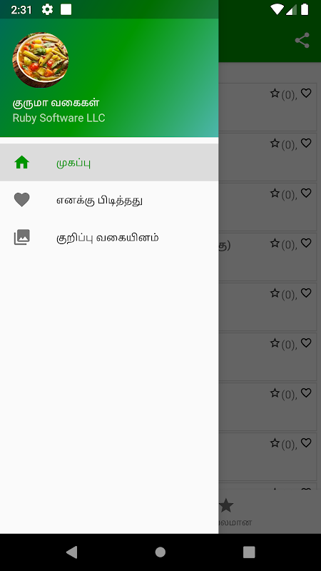 所有的食譜是在泰米爾語(தமிழ்)。我們有超過150個以上不同品種俱利摩的(科爾馬)食譜(குருமாசமையல்குறிப்புகள்),其中包括