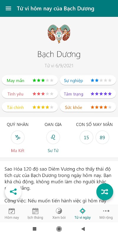 Ứng dụng giúp bạn xem bói, tra cứu lịch âm dương, lịch vạn niên, xem tử vi hàng ngày đơn giản, thuận tiện, nhanh chóng.