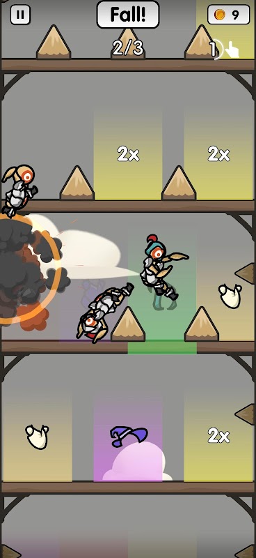 觸碰並拖曳來排列你的士兵,放開滑鼠讓重力(和命運)決定一切。 - 在墜落過程中最多點擊三次,調整方向並獲得關鍵獎勵。