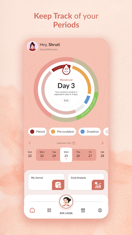 Laiqa 將人工智慧智慧與阿育吠陀的永恆智慧相結合,為您提供與您的週期同步的個人化解決方案。