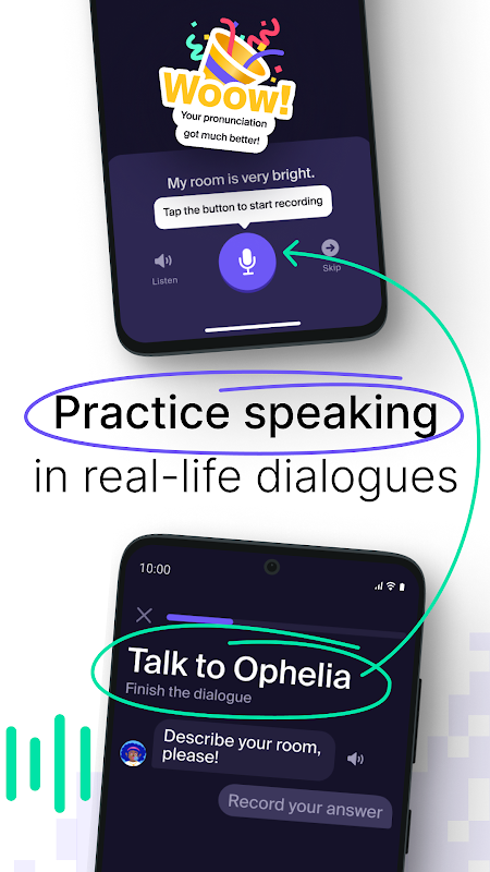 — 通過圍繞真實世界情境、新聞報導和訪談的課程練習聽力和發音。