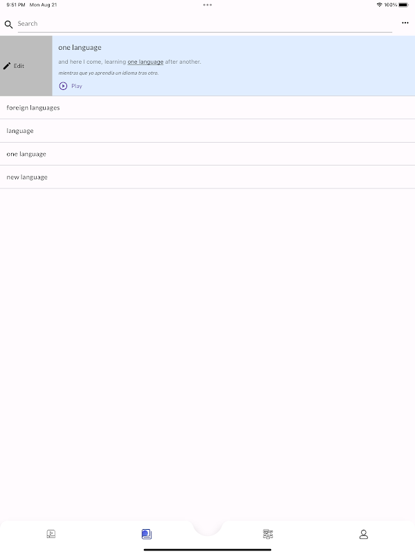按照您的步調學習至關重要。使用 LangVideo,可以選擇不同的字幕模式:外語、母語或所有語言。當您播放和暫停時,應用程式會動態調整模式,以滿足您的水平和學習風格。