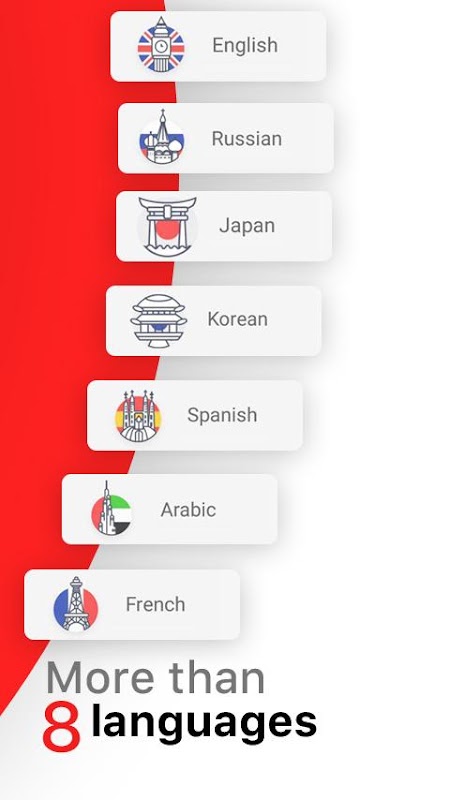 唯一具有9種語言考試題目的應用程序:英語,韓語,俄語,法語,德語,阿拉伯語,日語,西班牙語,中文。