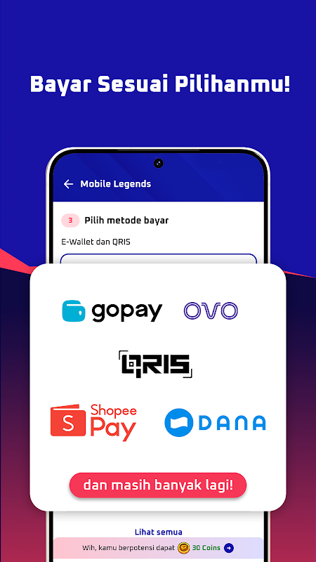 儲值選項適用於您玩的各種遊戲,包括《Mobile Legends》、《PUBG Mobile》、《Valorant》、《Free Fire》、《Ragnarok》、《Steam Wallet》等等。