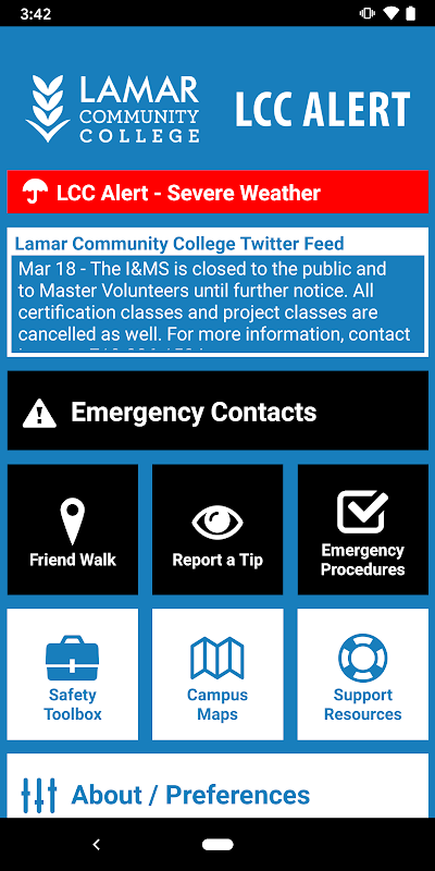 LCC Alert是Lamar Community College的官方安全應用程序。