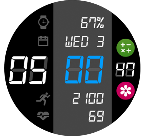 帶有自定義顏色主題選項和 2 個可自定義應用程序快捷方式的 LCD 錶盤