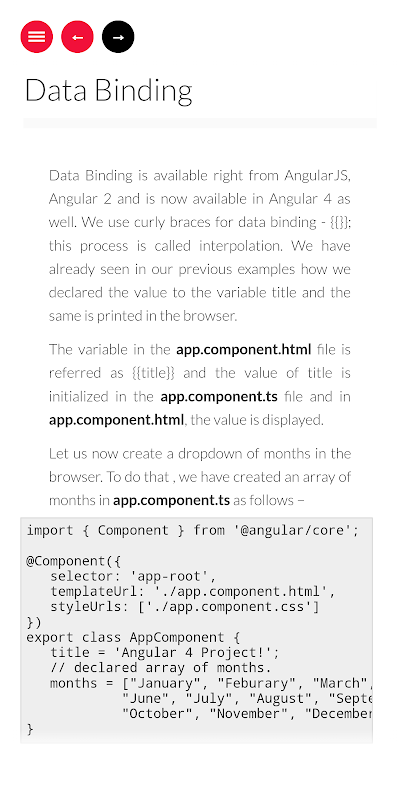 這個免費的應用程序將幫助您正確理解 Angular4 教程並教您如何使用 Angular4 開始編碼。在這裡,我們涵蓋了幾乎所有的類、函數、