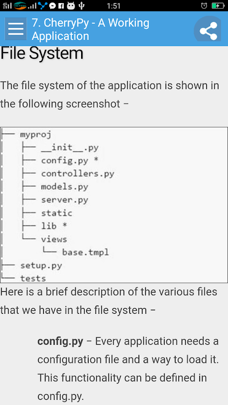 CherryPy provides the CRUD (Create, Retrieve, Update and Delete) functionalities for applications and helps in managing the project from anywhere using the user’s browser.