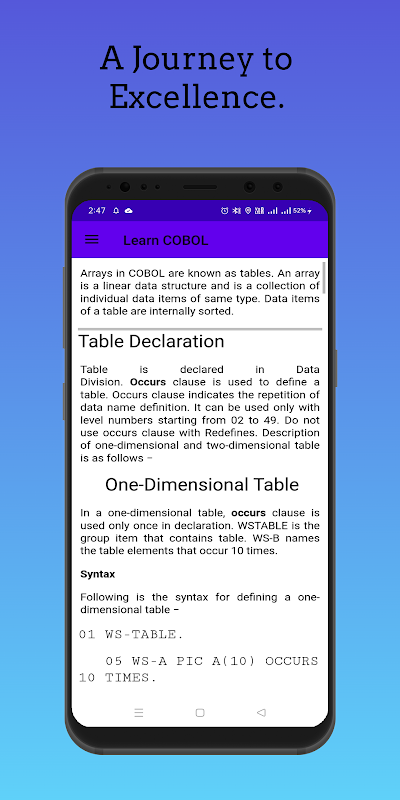 APKPure 使用簽章驗證功能,確保為您提供無病毒的 Learn COBOL APK 下載。