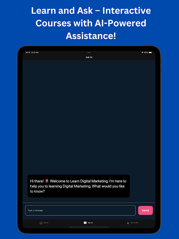 人工智慧驅動的學習:該應用程式具有智慧人工智慧導師,可逐步指導您了解每個數位行銷概念。對關鍵字研究或轉化追蹤感到困惑?人工智慧透過清晰的解釋、實際範例和用例對其進行了分解。您將學習如何像專業人士一樣進行策略思考、實施行銷活動以及衡量績效。