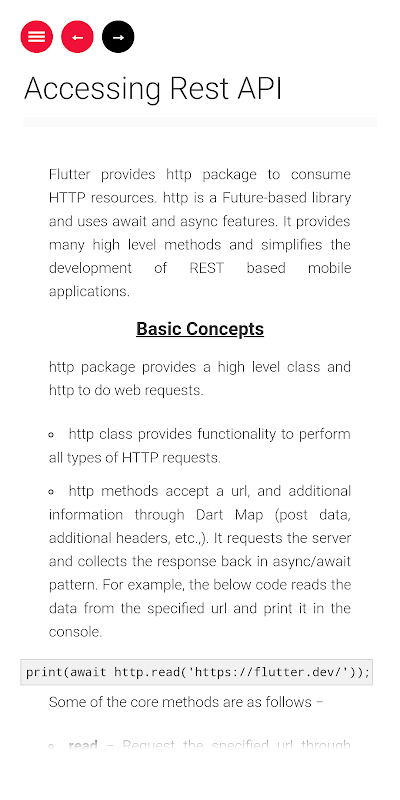這個免費的應用程序將幫助您正確理解 Flutter 並教您如何開始編碼。在這裡,我們涵蓋了幾乎所有的函數、庫、屬性、引用。順序教程讓您了解從基礎到高級的水平。