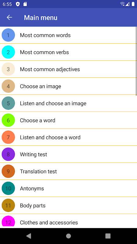 這個應用程序將幫助您學習如何讀、寫和發音單詞和短語。這是一款有趣且易於使用的教育遊戲,包含數以千計的單詞和短語,可為您提供現實世界中的知識。該應用程序分為 100 個主題,涵蓋日常生活或旅行情況。