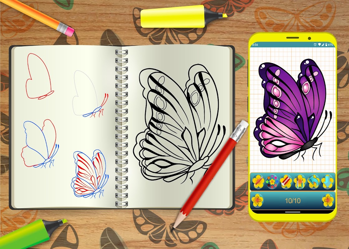 How to Draw and Color Beautiful Butterfly app is a personal art teacher, it will teach you how to draw a butterfly in easy steps.