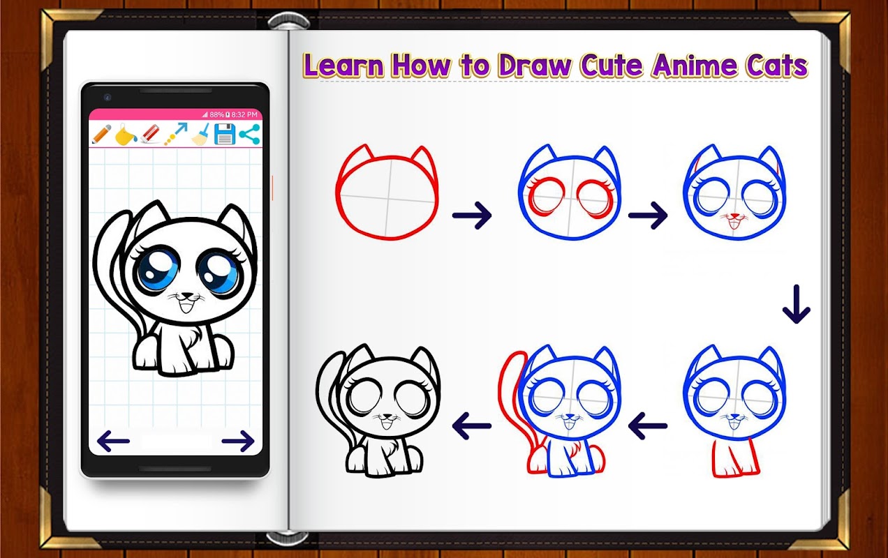 How to Draw and Color Anime Cats is a personal art teacher, it will teach your how to draw your dream cutest little kitty cats anime in easy steps.