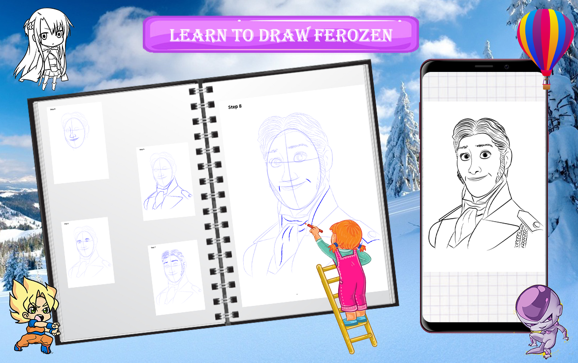 How to Draw Ferozen characters will teach you how to draw Ferozen characters from all around the world. Draw a Ferozen characters app contain best collections of Ferozen characters, its very easy to use and learn very quickly.
