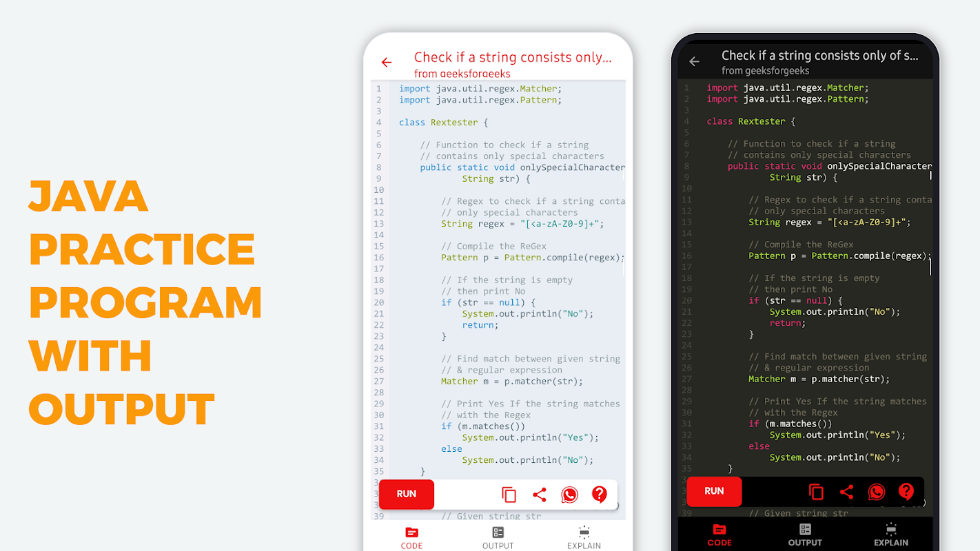 • Online Java Compiler: Run your Java program within application (required internet).