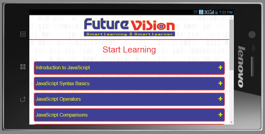 JavaScript是目前最重要的編程語言之一。現在學習JavaScript在自己的家裡,並且也沒有互聯網。該應用程序的目的是教你最簡單的方式的JavaScript,具有良好的更好的理解解釋的例子。您還可以使用編輯器模式的例子,讓您可以按照您的要求修改的代碼,看看輸出瞬間。