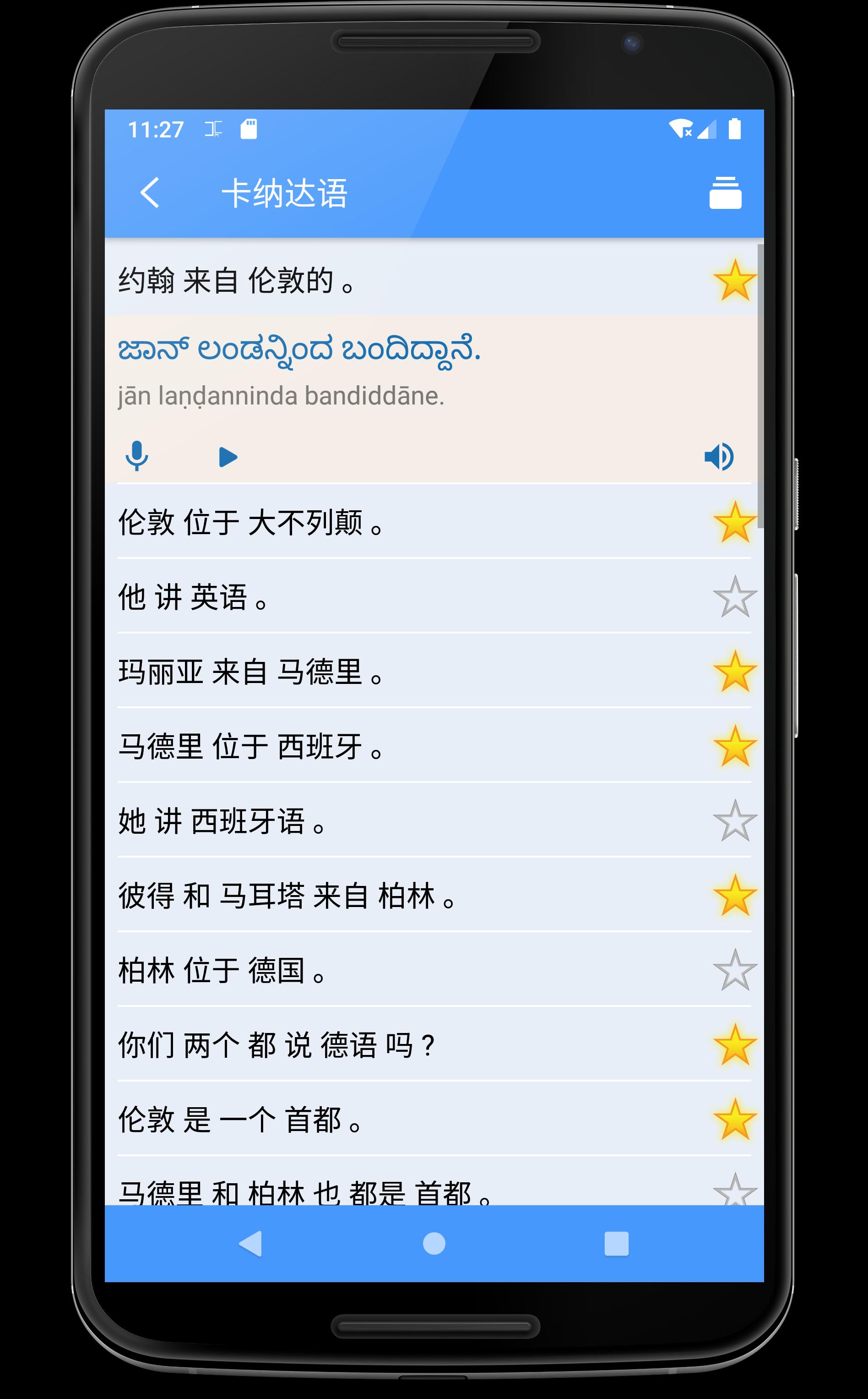 2.學習卡納達語短語,包括幾十種分類的短語學習,真人發音,清晰易學