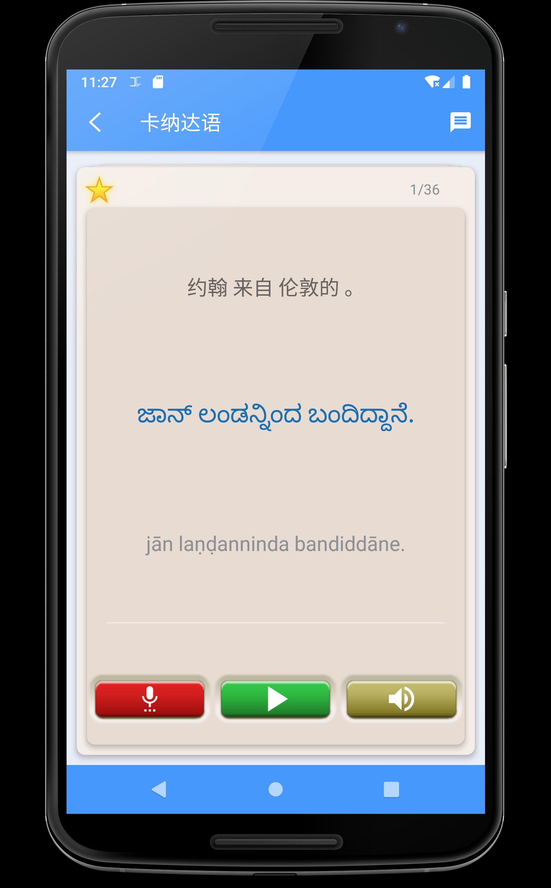 3.支持錄音功能,方便用戶對照學習,提高卡納達語口語,卡納達語聽力