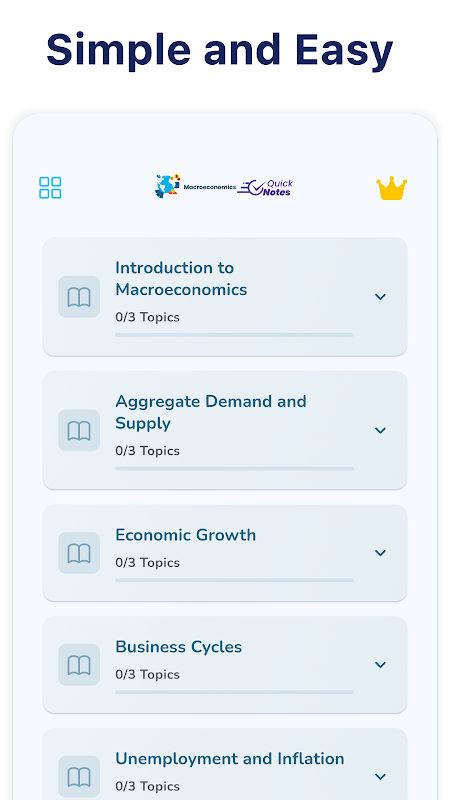 使用我們全面的應用程式探索宏觀經濟學,旨在使複雜的概念變得簡單。無論您是學生、有抱負的經濟學家還是愛好者,此應用程式都能提供清晰的解釋、互動問題和完全的離線存取。