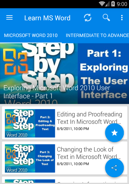 App Contains Different tutorials about Microsoft word Versions :