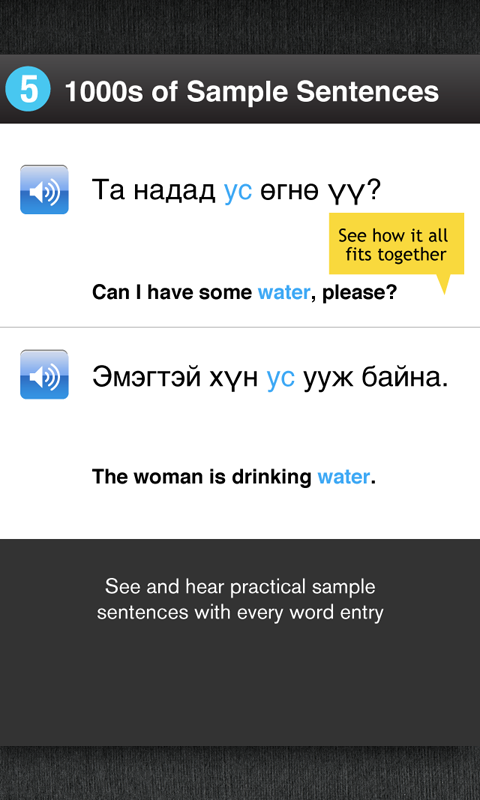 - Mongolian Top 100 Words: A special list of words specific to daily life in Mongolia. You’ll learn handy cultural insights with every entry transforming Word Power into a mini travel and cultural handbook (3G or WiFi required to access Wikipedia links within the app)