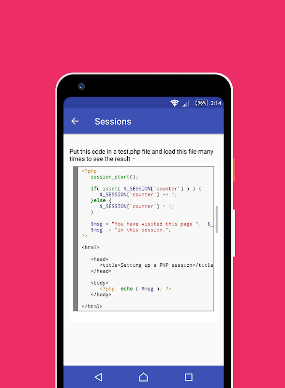 This app covers all the needed chapters from the basics to the Advanced levels, with code examples included that will help you understand every bit of this language and becoming a good developer, building dynamic websites and web applications and opens the doors for other languages to learn and becoming a full-stack web developer, as this language is a server-side language.