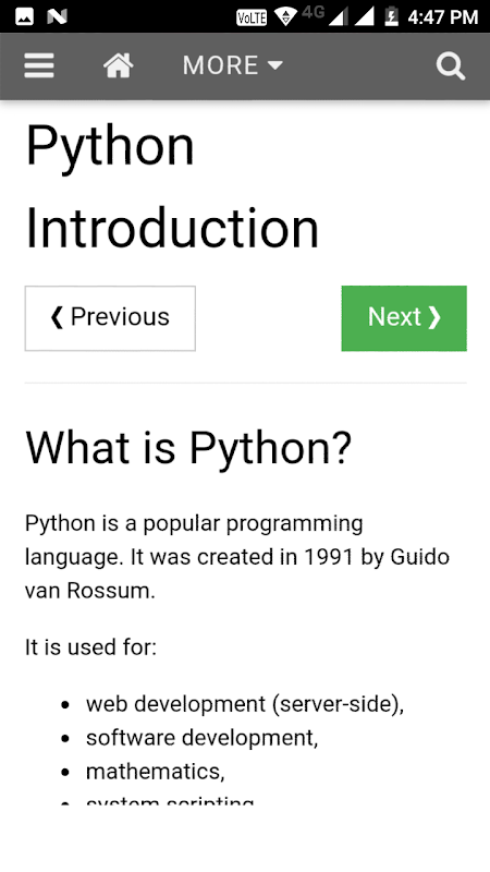 Python is a popular programming language. It was created in 1991 by Guido van Rossum.