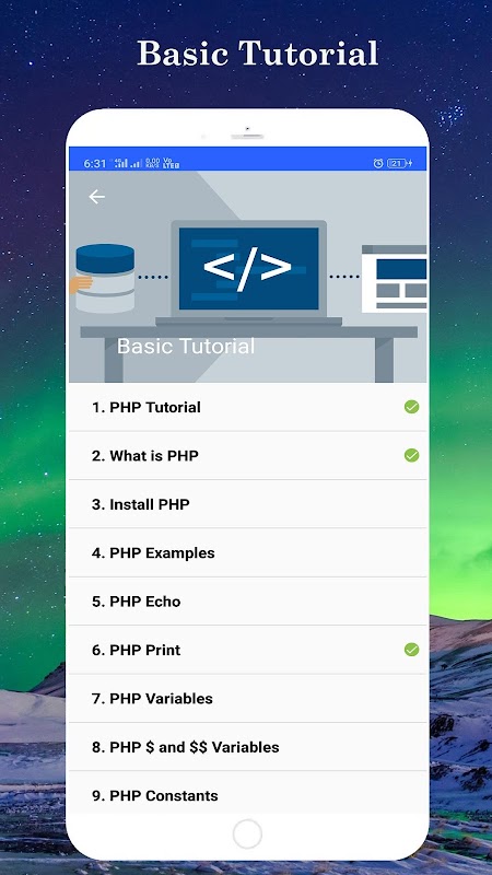離線學習PHP編程是新學員和學生的教程應用程序。