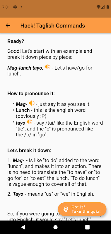 他加祿語可能讓人感到恐懼,困難和沮喪。此應用程序旨在以最簡單的方式讓您邁出使用該語言的第一步。