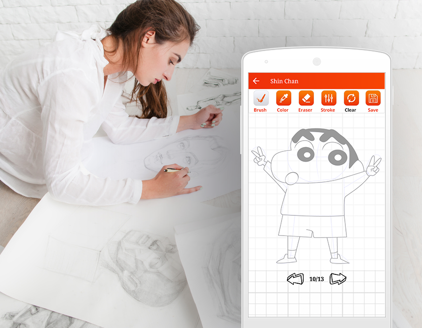 In this learning app that teaches you how to draw japanese anime Shin Chan Characters step by step