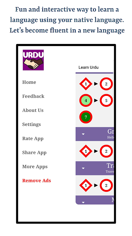 該應用程序將幫助您使用您的母語學習烏爾都語。以下是此應用的主要功能