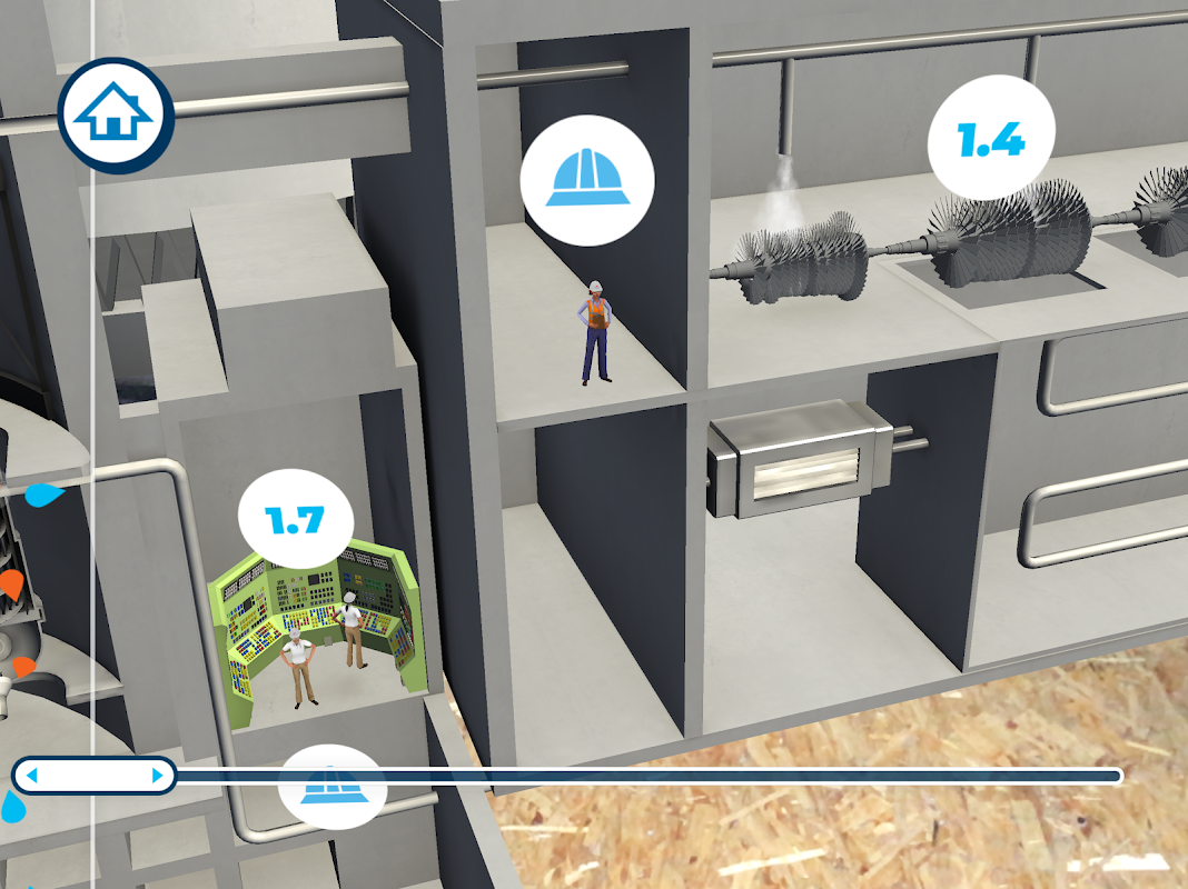 沉浸並參與核電廠的交互式3D模型,該模型說明了發電過程。可視化發電廠內部移動的不可見元素:水的溫度,氣流,質子和電子等。