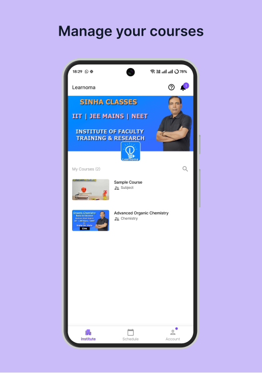 此應用程式適用於在 Learnoma 註冊的學習者和 Learnoma 的講師。在此應用程式上,教師可以進行即時課程,學習者也可以加入其中。教師也可以添加內容並與學習者分享。此外,教師可以創建並進行可供學習者嘗試的測驗和測驗。