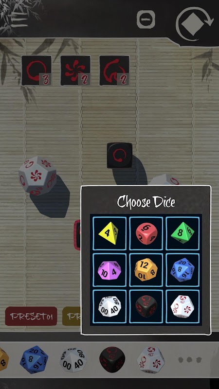 •可以用來卷定制L5R RPG骰子或標準多面體骰子任何遊戲的綜合物理為基礎的骰子滾。