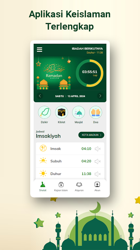 祈禱時間:取得印尼各城市確切祈禱時間的通知。該應用程式還提供齋月期間的 Imsak 和開齋提醒。