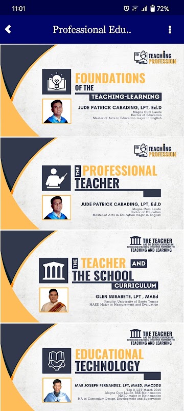 這個高級審閱者應用程序利用學習管理系統來幫助用戶處理專業教師執照考試 (LEPT) 的所有科目。該應用程序的主要目標是提供通過甚至超越 LEPT 所需的最新、準確和全面的信息,並提高用戶的內容、技術和教學水平。這將使用戶具備終身職業教師所需的能力。此外,它還滿足了在讀本科生就讀教育課程的需要。