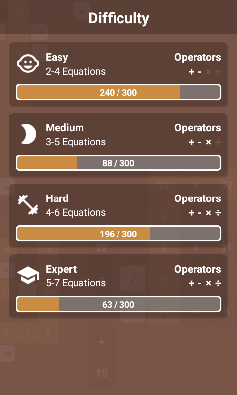上癮的數學益智遊戲•1200級•4個具有挑戰性的難度級別
