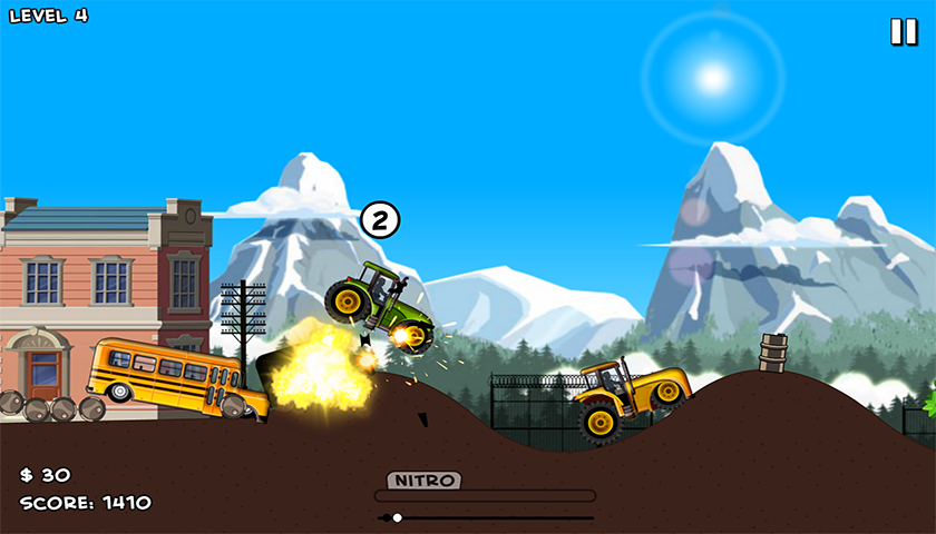 準備在這個激動人心的特技駕駛挑戰另一個致命的種族。選擇與第一定制你的車。你的目標是當你試圖拿出你的對手比賽有一些非常大的跳躍顛簸的路面。為了獲得硝基為您收集硬幣和星星在比賽中升級你的車,你必須執行後空翻。你必須不惜一切代價拉攏其他車手的勝利,即使這意味著摧毀他們的汽車。