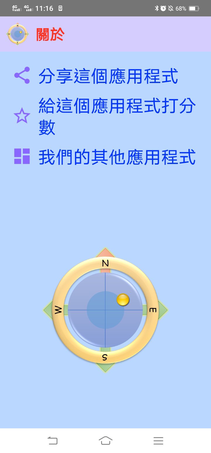 水平儀、指南針:打開 APP 裡的水平儀,並將手機放置平台上,可測量平台的水平,並且顯示方位。
