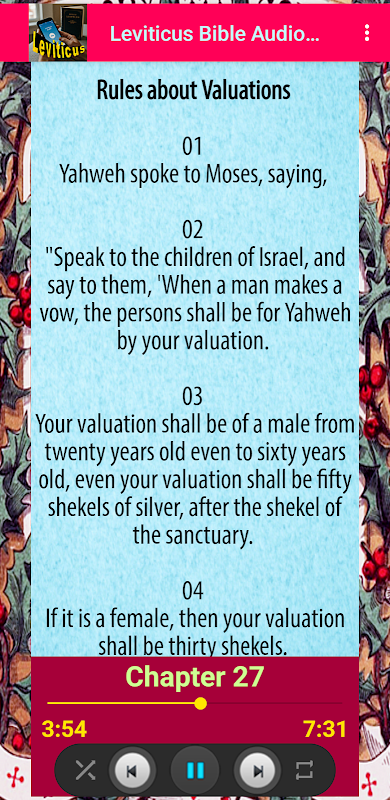 嘿朋友!想要探索聖經中真正有趣的部分嗎?利未記離線聖經音頻可透過來自世界英語聖經(WEB)的完整音訊和易於閱讀的文本來引導您完成利未記!