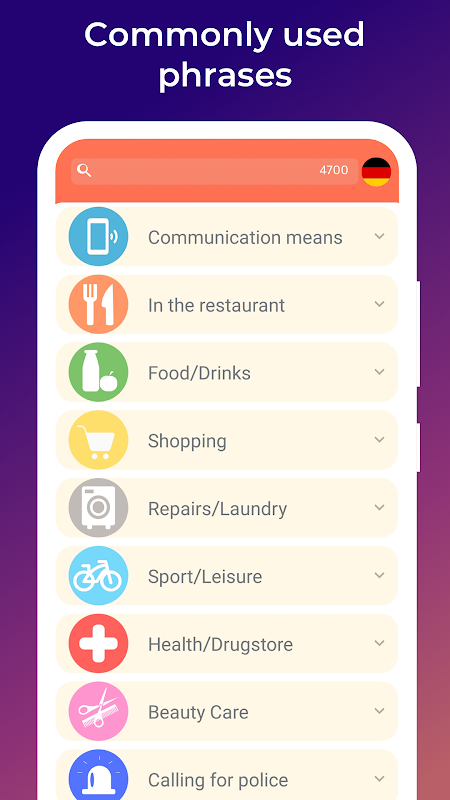 Learn Russian contains over 4700 commonly used Russian phrases and vocabularies for travellers and beginners in 15 categories: