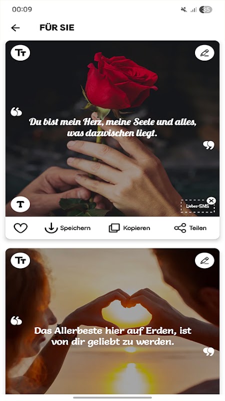 應用程式介面簡潔直觀,您可以輕鬆複製短信,並透過 WhatsApp、Messenger、簡訊等方式與您的伴侶分享。您還可以保存喜愛的短信,以便日後訪問,或創建收藏列表,方便快捷地訪問。