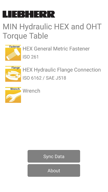 Small application used to lookup torque values corresponding to fasteners and hydraulic flanges used on Liebherr Mining hydraulic excavators and off highway trucks.
